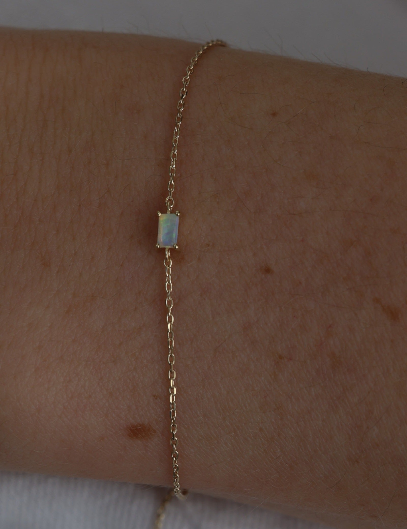The Estella Bracelet, meticulously set in 9k solid gold features an opal measuring 3.5 x 2mm with a carat weight of 0.07, captures the light beautifully, making it a standout piece. The chain is 16 cm long with two 1.5 cm extension, providing a balance of delicacy and substance.