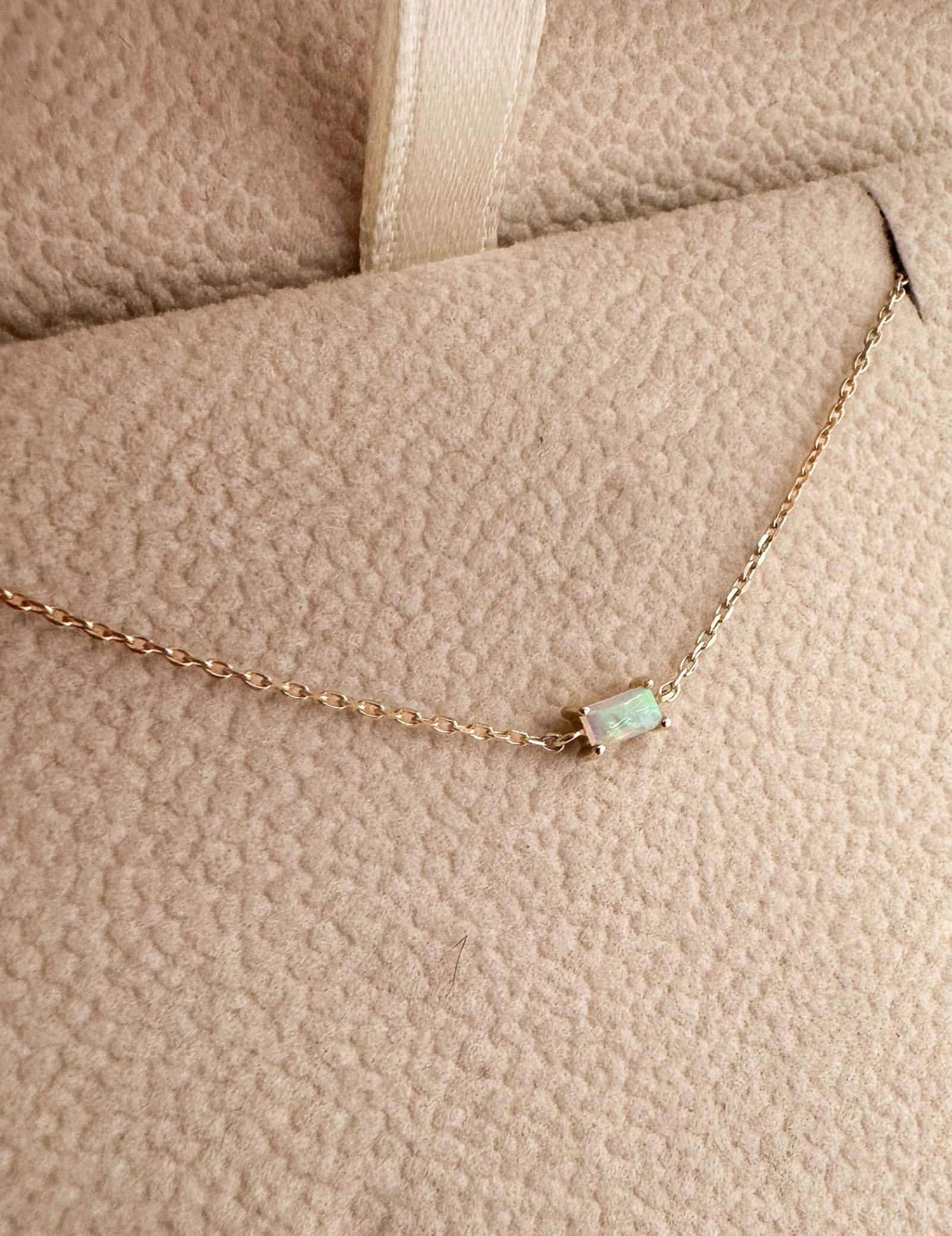 We love Australian opals so much! This Baguette cut Opal manages to hold onto the magical colour flashes within