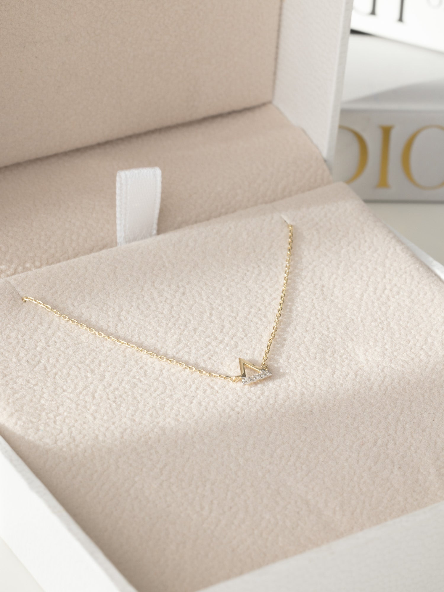 The bracelet features a Fire triangle charm in solid 9K gold that points upwards like a flame, adorned with a line of delicate white diamonds that embody the essence of Fire.