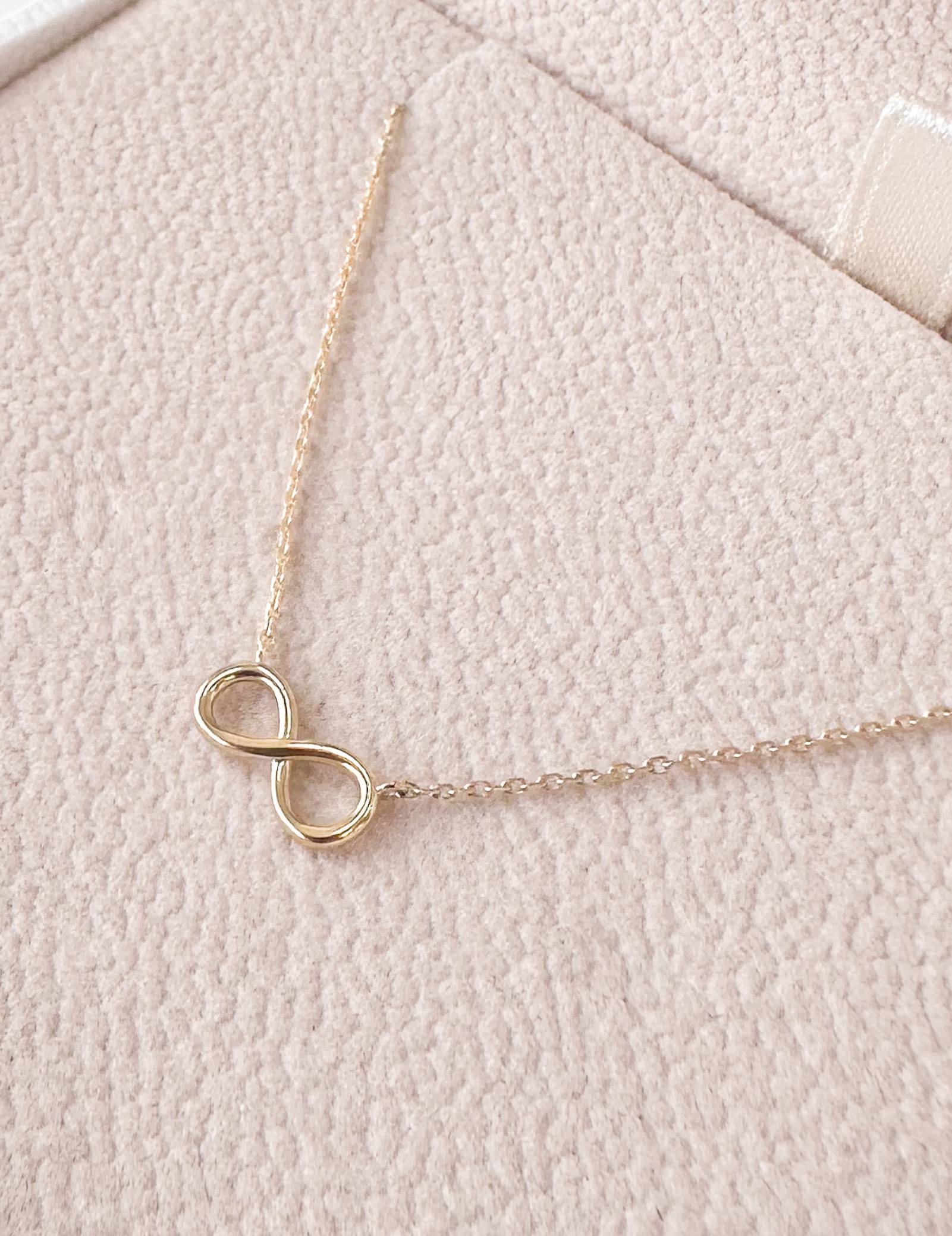 With no beginning and no end, this is our dainty version of the Infinity Necklace