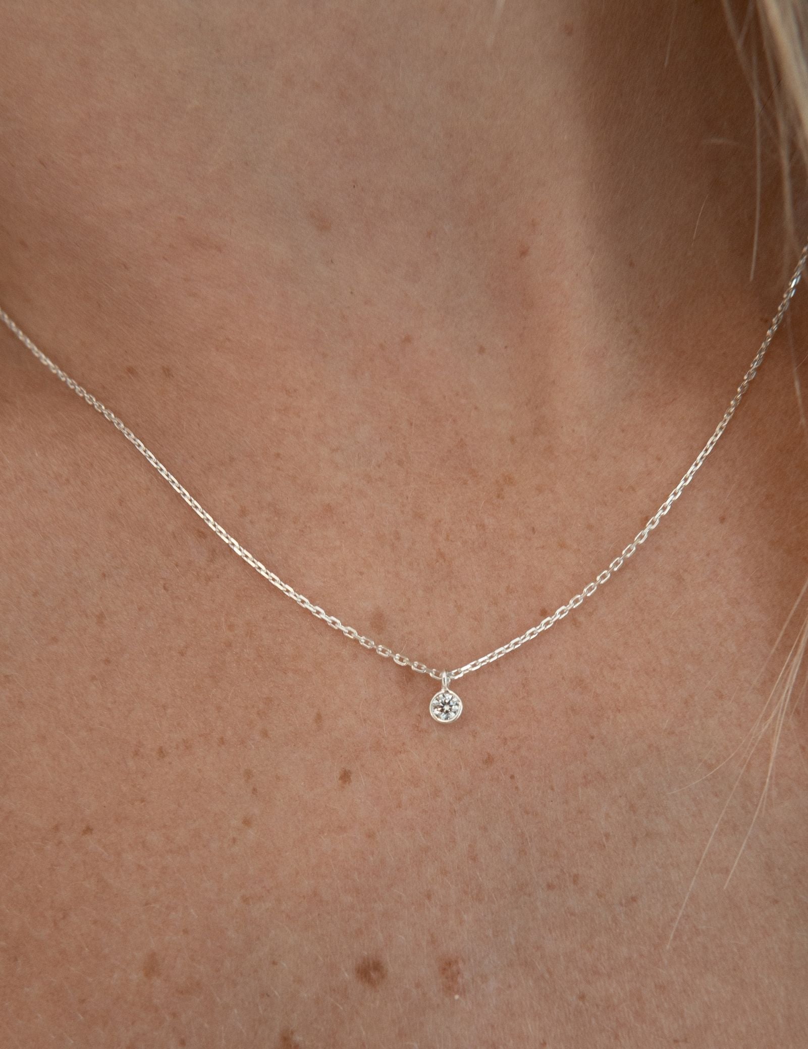 The Diamond Sky Necklace's pendant measures 3mm in diameter. The chain is 40cm with a 5cm extension, providing a balance of delicacy and substance.