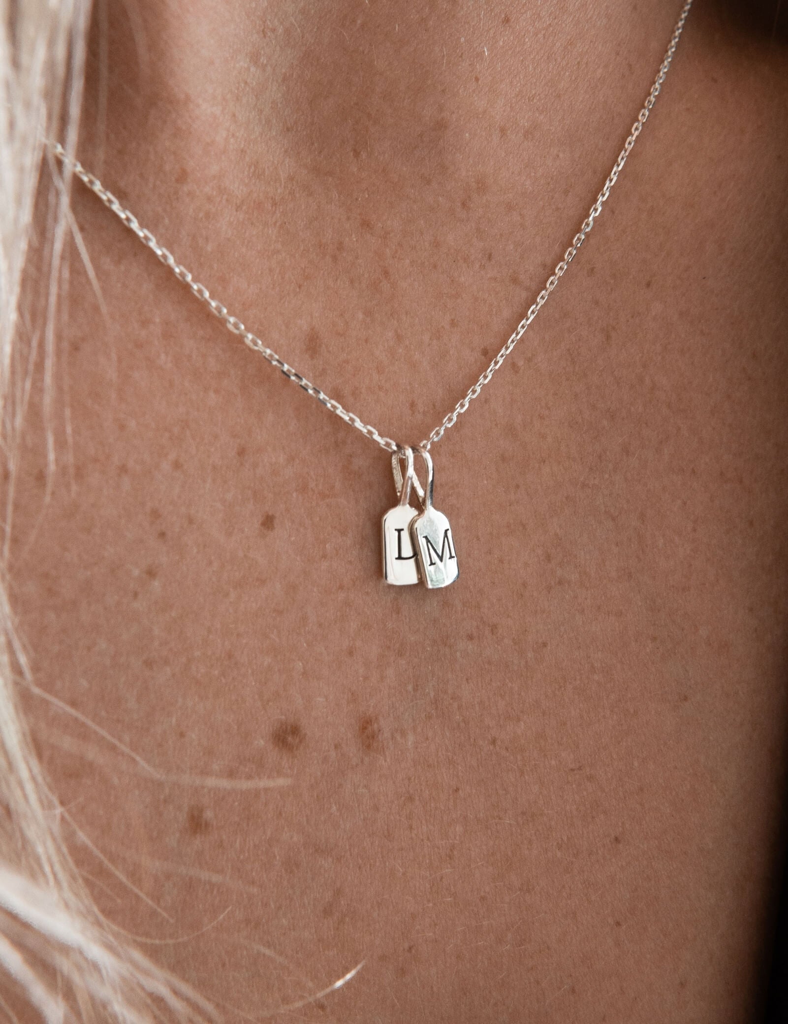 The delicate typewriter-style font allows it to hang as a single charm or be layered with other Luna Letters, creating a personalised piece. Available as a standalone charm or with a silver chain of varying lengths, it's a lightweight yet distinctive accessory.