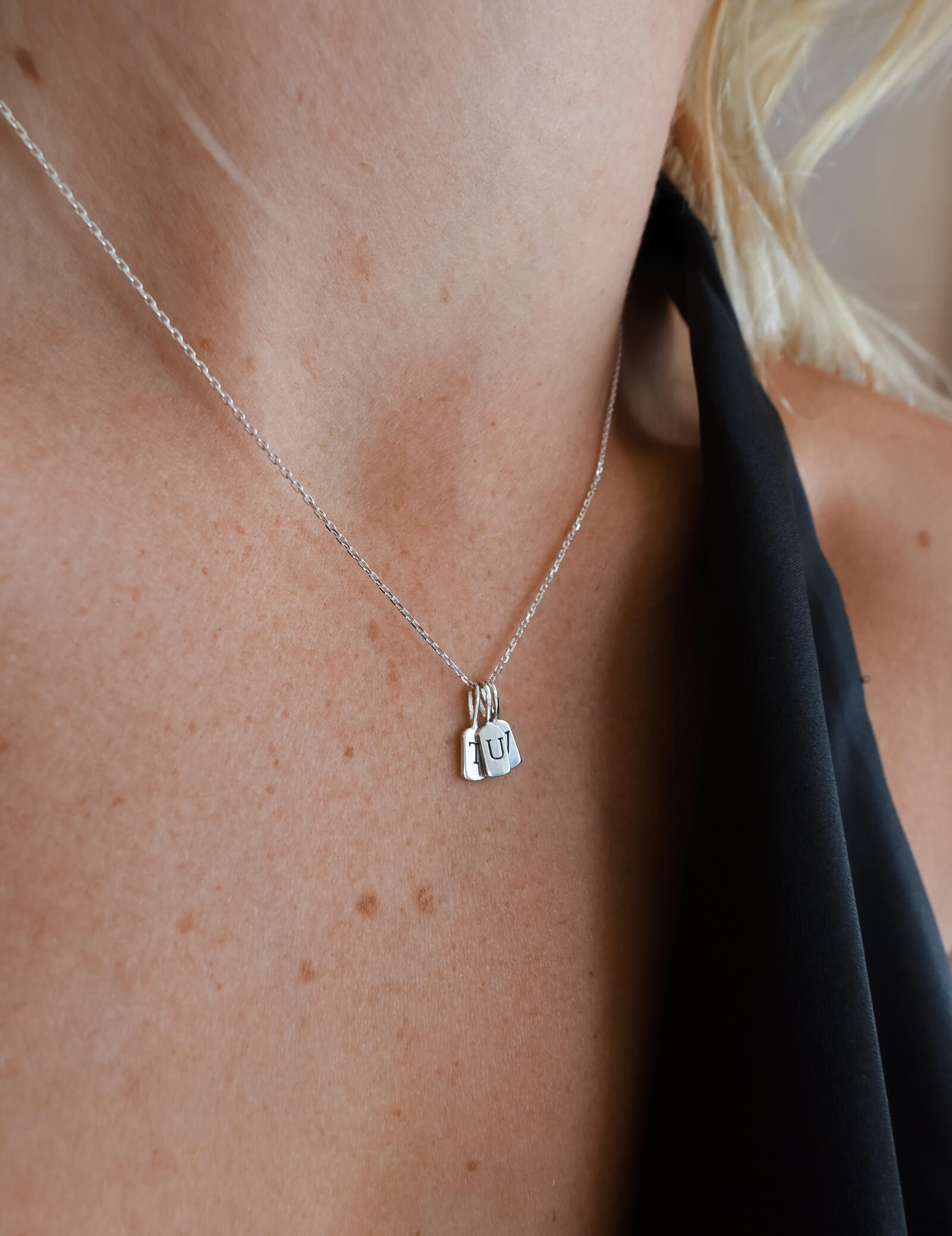 The delicate typewriter-style font allows it to hang as a single charm or be layered with other Luna Letters, creating a personalised piece. Available as a standalone charm or with a silver chain of varying lengths, it's a lightweight yet distinctive accessory.