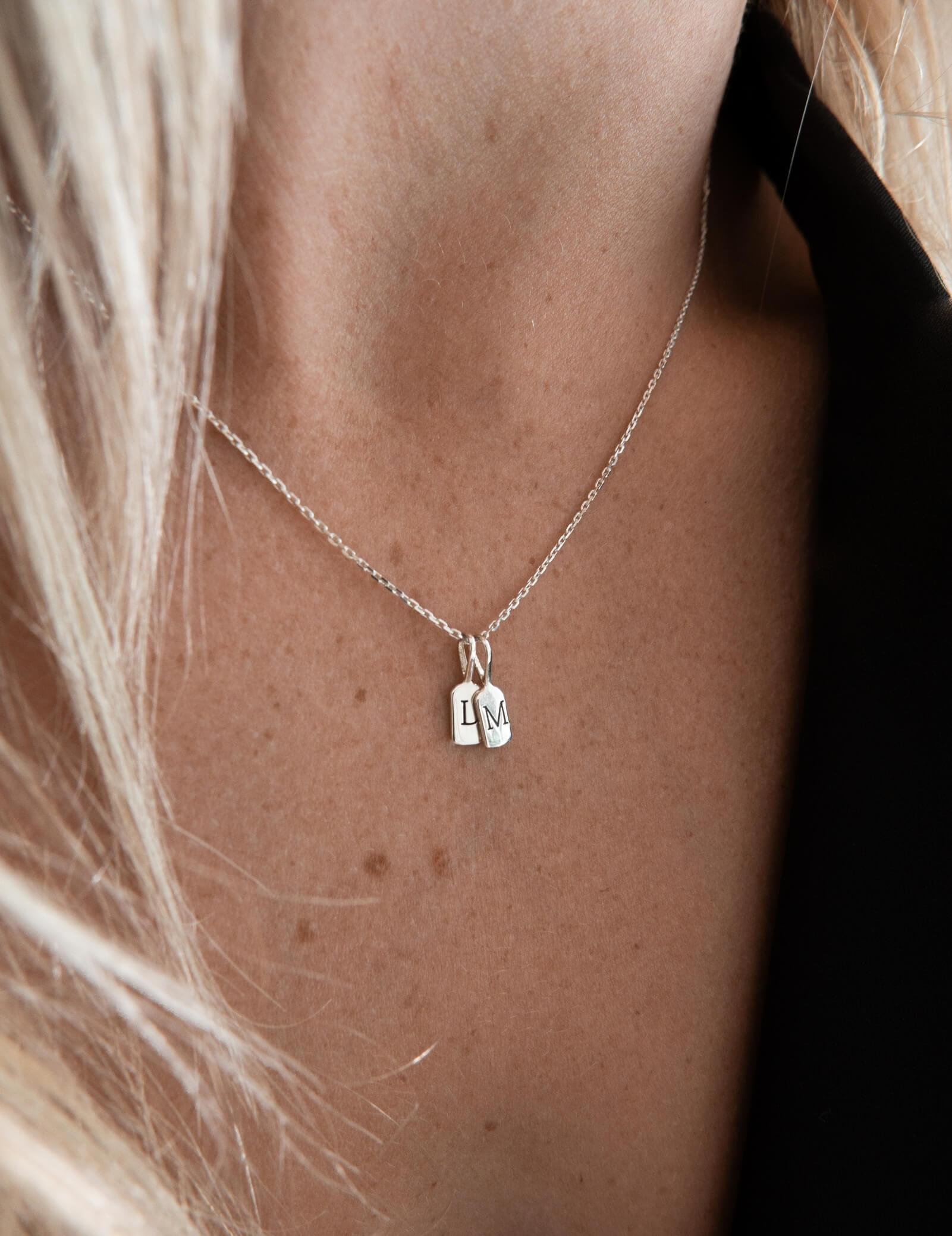 The delicate typewriter-style font allows it to hang as a single charm or be layered with other Luna Letters, creating a personalised piece. Available as a standalone charm or with a silver chain of varying lengths, it's a lightweight yet distinctive accessory.
