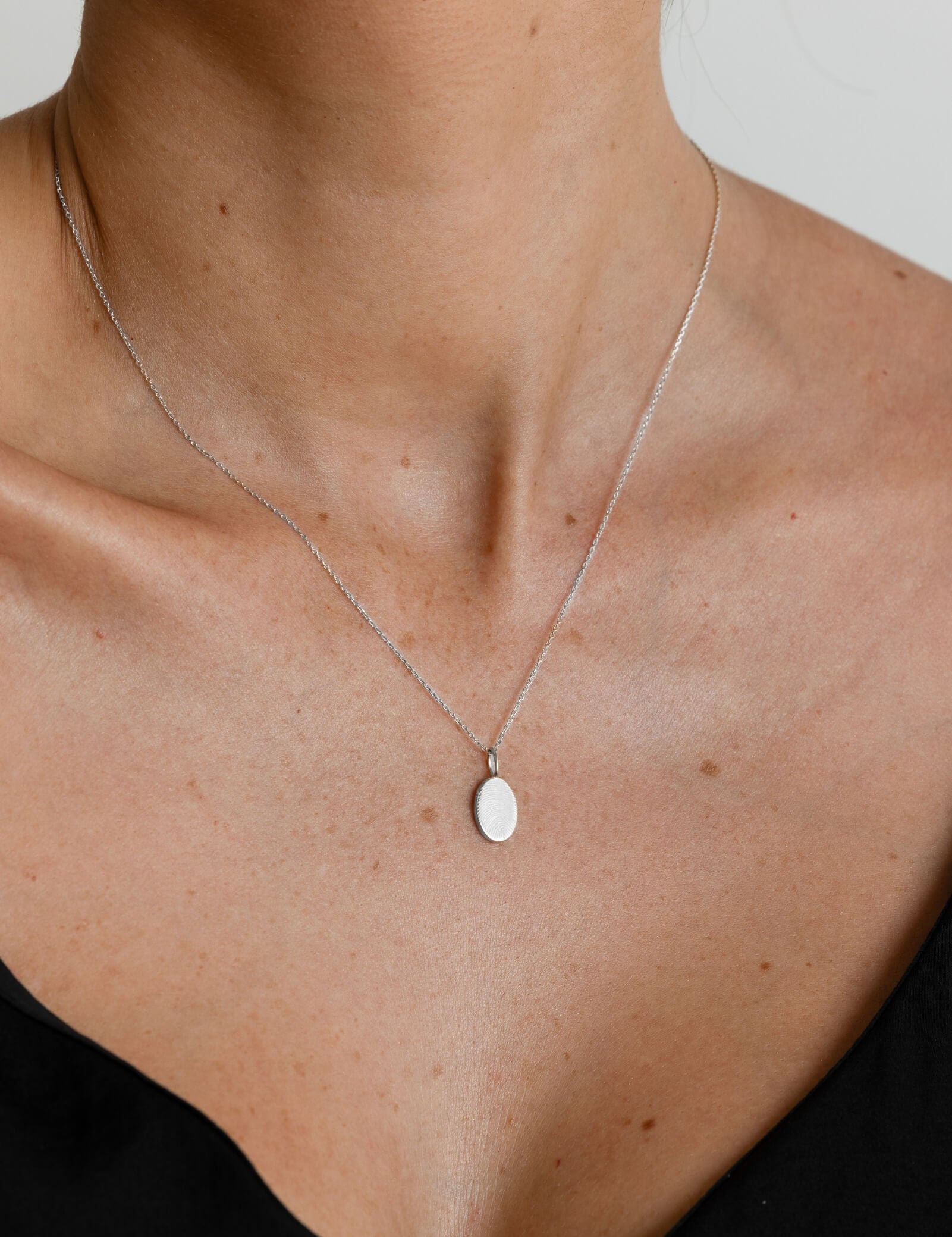 Carry the touch of your loved ones wherever you go with the Oval Pendant, crafted from sterling silver. Designed for engraving fingerprints, paw prints, artwork, or a memorial touch, it transforms into a deeply personal keepsake.