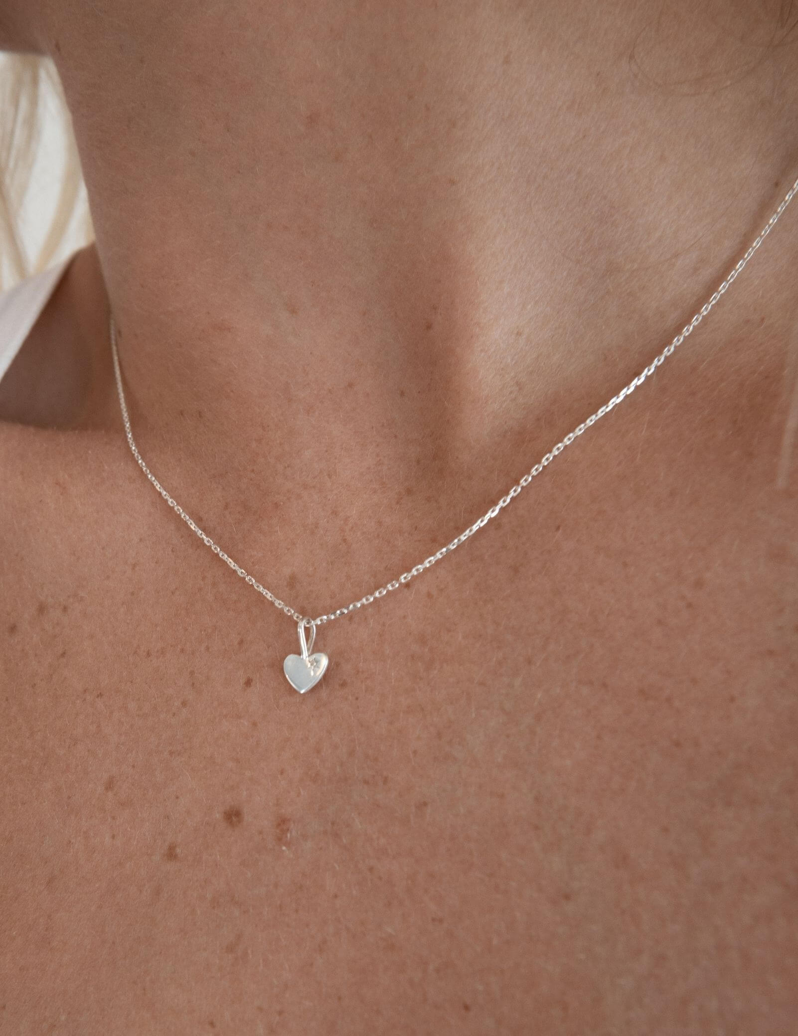 Celebrate love in its purest form with our Sweetheart Necklace a subtle yet powerful reminder of the love that surrounds you, always. Crafted from sterling silver, the heart-shaped pendant, adorned with a delicate 1mm brilliant cut natural diamond represents love in all its forms between partners, within families, among friends, and towards oneself.