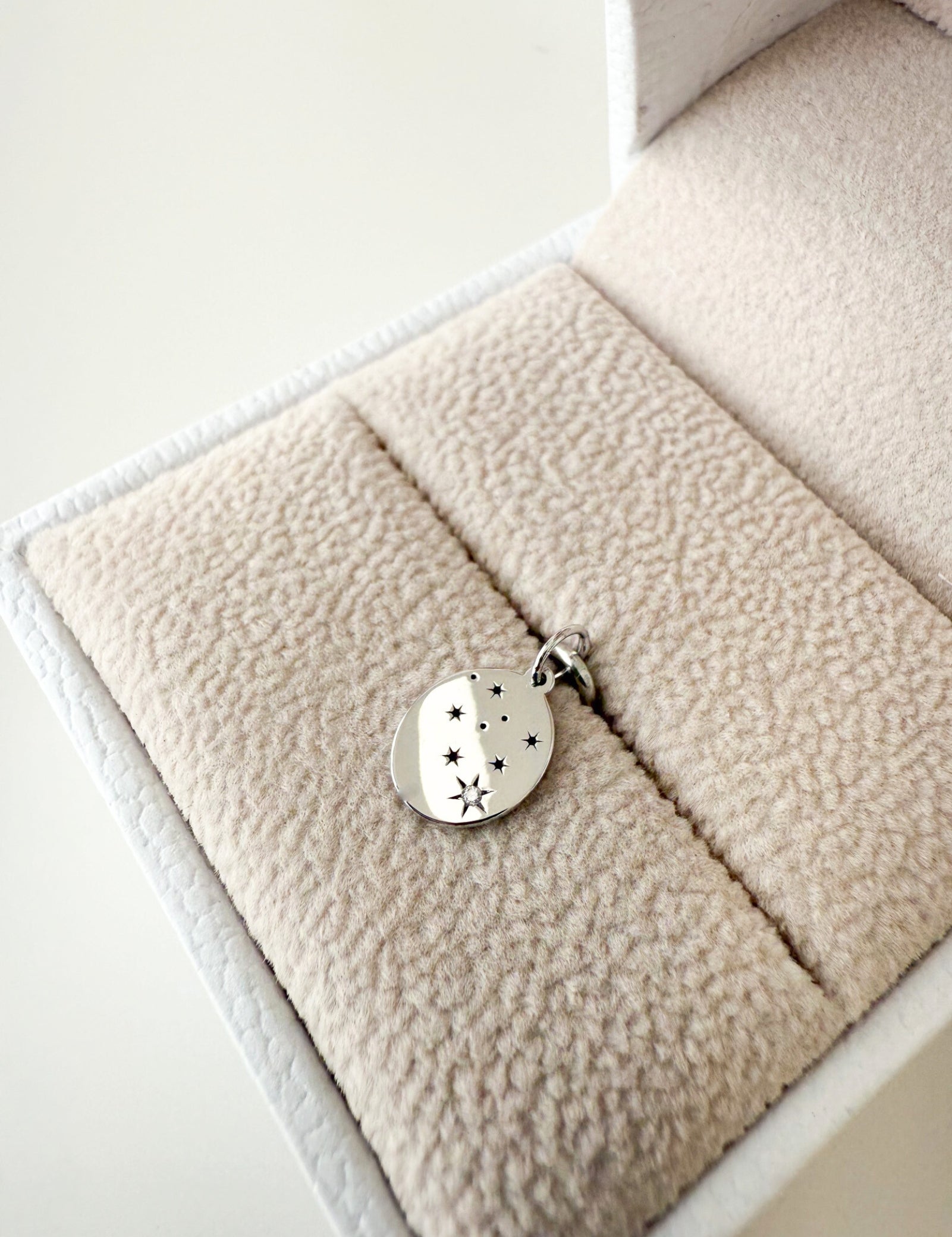 Available as a pendant or paired with either a 40cm or 45cm solid white gold chain with a 5cm extension, this necklace is adaptable, meaningful, and personal to your astrological sign.
